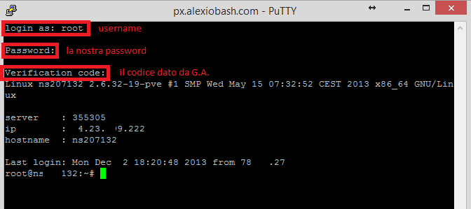 A questo punto, se tutto andato bene, proviamo connettendoci al server in ssh: